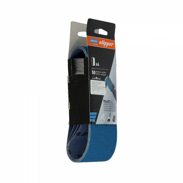A Norton Clipper csiszolószalagok 13x454mm-től 100x610mm-ig kaphatók. A szalagok cirkónium-oxid szemcsékből készülnek, amely nagy teljesítményt biztosít olyan kemény alkalmazásoknál, ahol nehéz anyagok eltávolítására van szükség. A szíjak megfordíthatók, így mindkét irányban használhatók a gépen. A nagy teljesítményű csiszolóanyag gyors vágási műveletet és mag