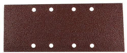 Csiszolópapír készlet vibrációs csiszológépbe VED-09, 93 x 230 mm, P120, 8 lyuk, csomag. 10 db A csiszolópapír készlet vibrációs csiszológéphez alkalmas. Méretei 93 x 230 mm, szemcséssége P120 típusú. 8 nyílás található rajtuk, melyeken keresztül egyszeruen ráhelyezheto a csiszolófejre. 10 darabos kiszerelésben.