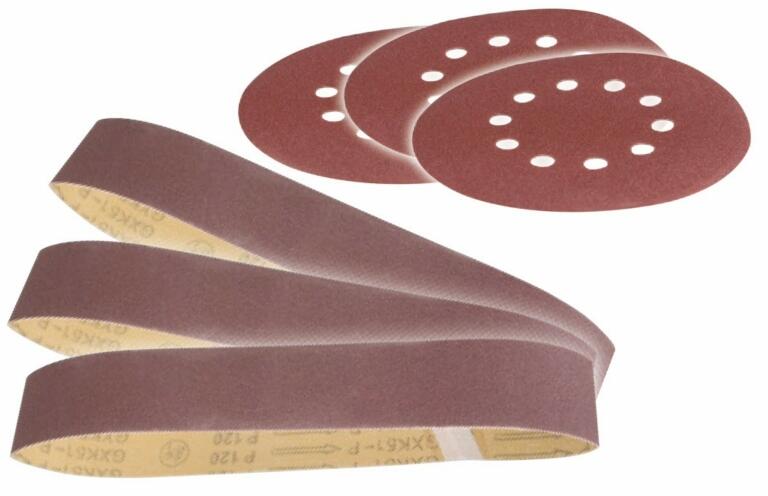 Csiszolótárcsa átmérő: 125 mm szemcse: P80, P120, P180 Csiszolószalag Méret: 762 x 25,4 mm szemcse: P60, P100, P180 A készlet 3-3 db csiszolótárcsát és szalagot tartalmaz.