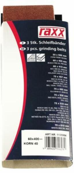 kiszerelés: 3 dbalapanyag: szövet méret: 75 x 533 mmszemcsenagyság: P 150dolgozó szemcse anyaga: alumínium-oxid EAN kód: 4044996030043