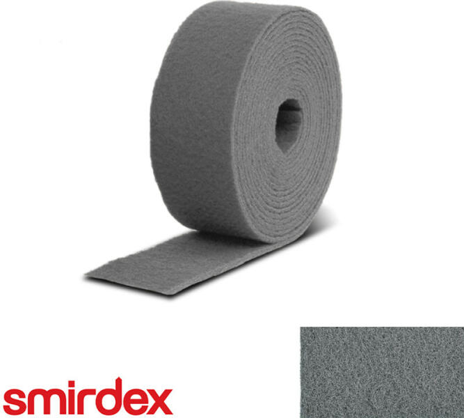 Skót szivacs nem szőtt csiszolószalag tekercsben (szürke) Szélesség: 115 mm Szilícium-karbid szemcsék (SIC) Ultra finom, P600 A Smirdex számos formában kínálja ezt a csiszolóeszközt: ívek, tekercsek és korongok is elérhetők. Speciális 3 dimenziós, „rugószerű kiképzésének köszönhetően a skót szivaccsal különösen sima felület érhető el. Nem szőtt Nedves csiszol