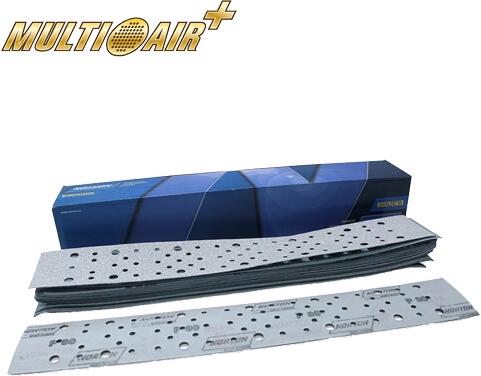 A Multi-Air Plus speciális No-Fil bevonata megakadályozza a porképződést és elkerüli az idő előtti eltömődést. Nagyon finom szemcséknél a festés előtt felhasználható a végső száraz csiszoláshoz, a futtatás veszélye nélkül. Tépőzáras rögzítés a csiszolótömbből történő egyszerű alkalmazáshoz és eltávolításhoz. A szabadalmaztatott Norton kerámia szemcséke