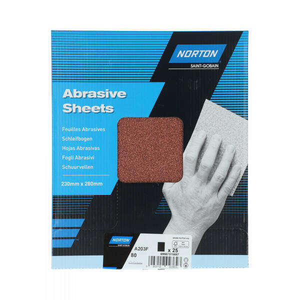 A Norton papír-, szövet- és vízhatlan lapok széles választékát kínálja az általánosan használt ipari alkalmazásokhoz. Rendkívül éles szilícium-karbid szemcsék kemény és kemény felületekhez. Rugalmas hátlap a munkadarab jobb illeszkedése érdekében. Lakkozás, festék, fém, üveg, kő, márvány és műanyag felhasználásra. Vízálló papírlap nedves és száraz csiszo