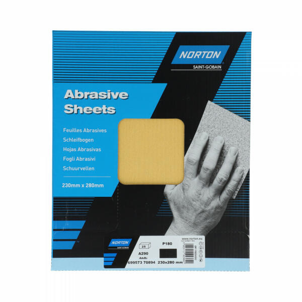 A tartós papír hátlappal és eltömődésgátló sztearáttal ellátott A290 csiszolólap jó csiszolási teljesítményt biztosít számos anyagon, beleértve a fémet, a vakolatot, a keményfát és a puhafát, miközben hosszabb élettartamot biztosít, mint a hagyományos csiszolóanyagok. 25 db-os ömlesztett kiszerelésben kapható. Az alumínium-oxid szemcse jó anyageltávolítást tesz