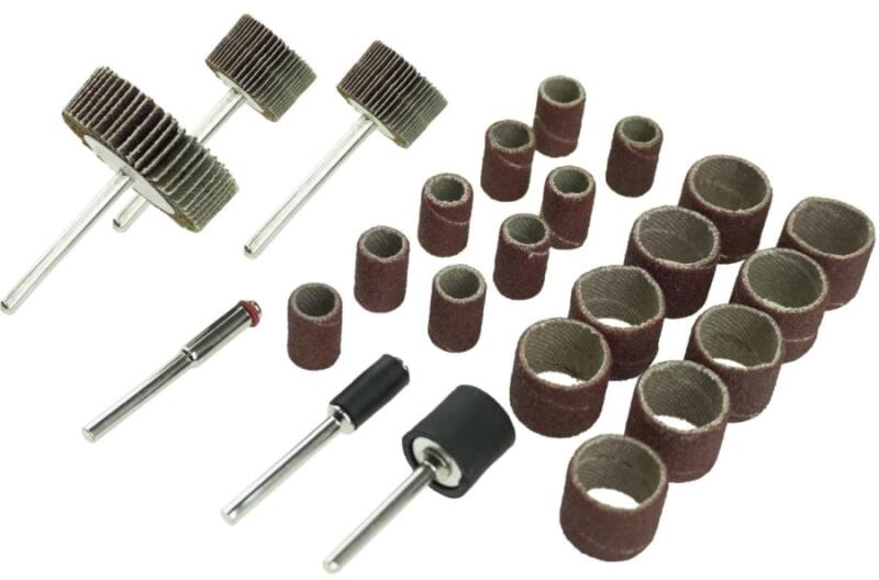 A készlet lehetővé teszi a precíz megmunkálást kis tárgyakon és különböző felületeken Mennyiség: 24 db Tartalom: 9 db K60 csiszolószalag: 6,3 mm 9 db K120 csiszolószalag: 12,7 mm 1 db lamelláscsiszoló: 31,5 mm 2 db lamelláscsiszoló: 16 mm 3 db csiszolószár: Befogás: 3,2 mm A készlet a DED7946Z1, DED7944Z2, DED6903 csiszológépekhez ajánlott