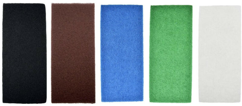 Háromdimenziós szerkezetű, nagy sűrűségű, hálós struktúrájú, rugalmas csiszolóanyag, beágyaott csiszolószemcsékkel. szárazon és viszesen egyaránt használható, víz és olajálló Ajánlott: könnyű szennyeződések, oxid-réteg vagy rozsda eltávolításához illetve fémfelületek (rozsdamentes acél is!) polírozásához A/O: alumínium-oxid szemcsével (bordó) S/C: szilí