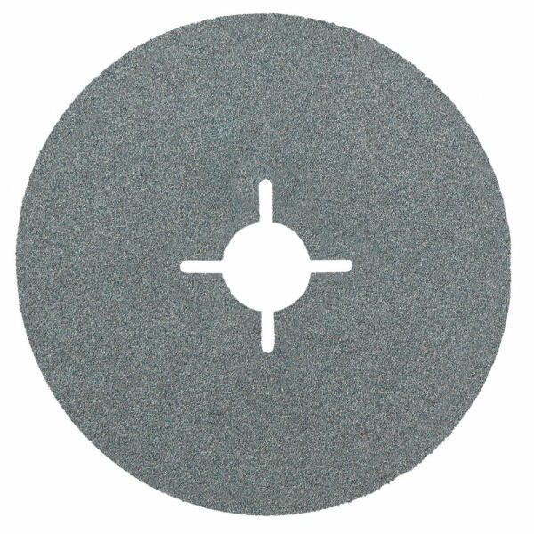 Fíbertárcsa GRAPHITE (kat. sz. 55H854) külső átmérő 125 mm finomsága 120. A korong készítésénél tömör szórást alkalmaztunk, a felületet 100%-ban zirkon borítja, ami az elektrokorundhoz képest hosszabb élettartamot, élesebb szemcséket biztosít, és jobban elvezeti a hőt, ami nagyszerűen beválik a rozsdamentes acél megmunkálásánál. A korong felfogása a sarokcsiszoló