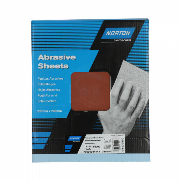 A Norton T100 Alumina vízálló lemezeket kifejezetten nedves és száraz megmunkálásra készítették. A T100 lemezek jól eltávolítják a fölösleges anyagot, kiváló minőségű kivitelben és kiváló simaságban részesülnek. A rugalmas latex háttér lehetővé teszi az egyenetlen és alakú felületekkel való munkát. Ez kiváló megoldás az autóipar és a famegmunkálás számá