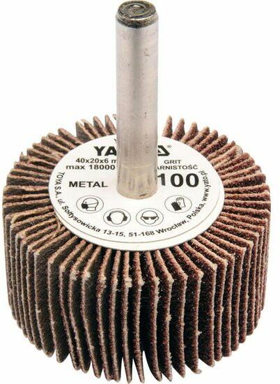 Fémszárra állandóan rögzített csiszolószövet-lapkákból álló csiszolókorong. Fúrógépekkel vagy egyenes csiszolókkal való használatra szánták. Rendeltetésszerű használat / alkalmazás Alkalmas fémek, fa és egyes műanyagok csiszolására. Műszaki adatok: Cikkszám YT-83355 EAN 5906083833557 Márka Yato Súly (kg) 0,0330 MC 120 mesterdoboz Belső doboz IB 10 Granulálás 12