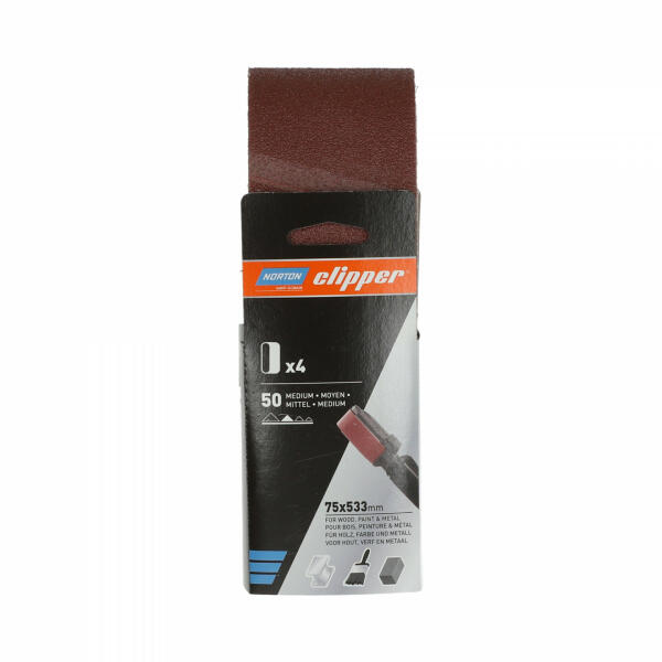 A Norton Clipper alumínium -oxid csiszolószalagok 75x533mm és 100x610mm átmérőben kaphatók. A nagy teljesítményű csiszolóanyag gyors vágási műveletet és nagy anyagleválasztást biztosít, így ideális az általános célú alkalmazásokhoz. A végtelenített szalagok megfordíthatók, így mindkét irányban használhatók a gépen. Termék információk:Gyártói cikkszám:662611
