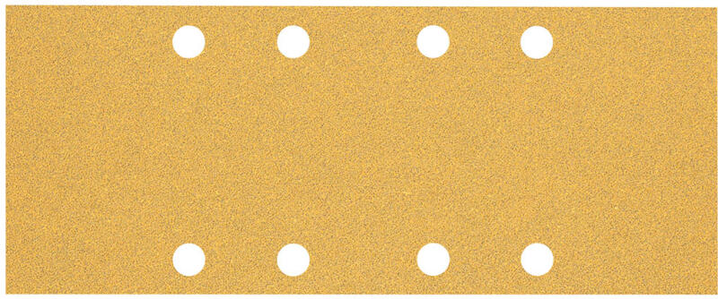 Makita perforált csiszolópapír - 93 x 230 mm - K40 - 10 db 10 darabos csiszolópapír csomag. Alkalmas fa, vas- és színesfémek és műanyagok csiszolására. Alumínium-oxid csiszolópapírból készült csomag, 8-szor perforált lapok. Szemcseméret: K40 Méret: 93 x 230 mm Csomag tartalma: 10 db Famegmunkáláshoz 40-80-as, durva csiszoláshoz (pl. régi festék vagy lakkréteg eltávolít