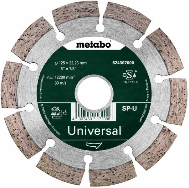 Univerzális gyémánt vágókorong szegmentált éllel az agresszív, gyors vágásért, nagy vágási teljesítménnyel és jó élettartammal Jól használható minden építőanyaghoz, mint például beton, homlokzati adalékanyag, kemény homokkő, agyagtégla Szegmensmagasság 10 mm Paraméterek Lemezméret: 125 x 22,23 mm Szegmens méretei: 31,7 x 2 x 10 mm Szegmensek száma: 10 Maximális
