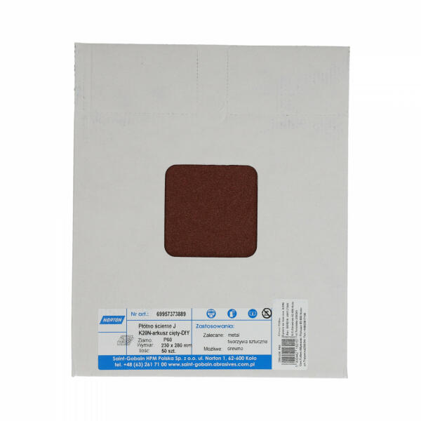 Alumínium-oxid csiszolóanyag az agresszív vágáshoz minden száraz csiszolási alkalmazáshoz. Nehéz és könnyű kézi csiszolás a szemcséktől függően. Fán és fémen egyaránt használható (rozsdaeltávolítástól a könnyű felületkezelésig). Kiváló ár/teljesítmény arány. Termék információkGyártói cikkszám69957373889Méret230x280 mmSpecifikációP60 szemcseCsomagolás