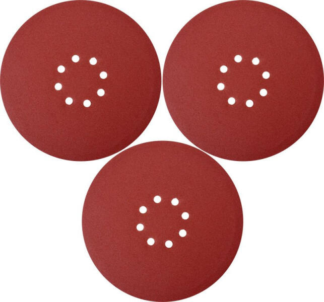 Tépőzáras csiszolópapírok vakolatcsiszolókhoz (gipszkarton, homlokzati vékonyvakolat megmunkálása). elektrokorundból készült erős tépőzáras hátlap rugalmas neoprén hab párnával 8 lyuk az oszcillációhoz Alkalmas csiszológépekhez: Paraméterek Szemcseméret: P120 Mennyiség [db:] 3 Átmérő [mm]: 225