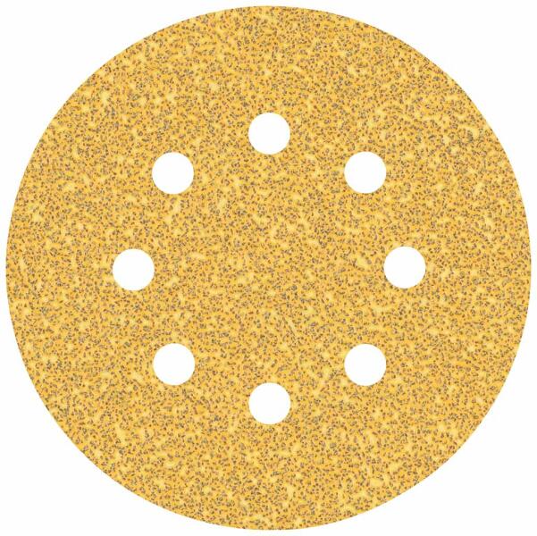 Hosszú élettartamú tépőzáras csiszolópapír fa, színesfémek, műanyagok és kő csiszolására. Speciális felületkezeléssel rendelkezik, amely megakadályozza a csiszolószemcsék eltömődését. A papír perforált (8 lyuk). 10 db-os csomagolásban.