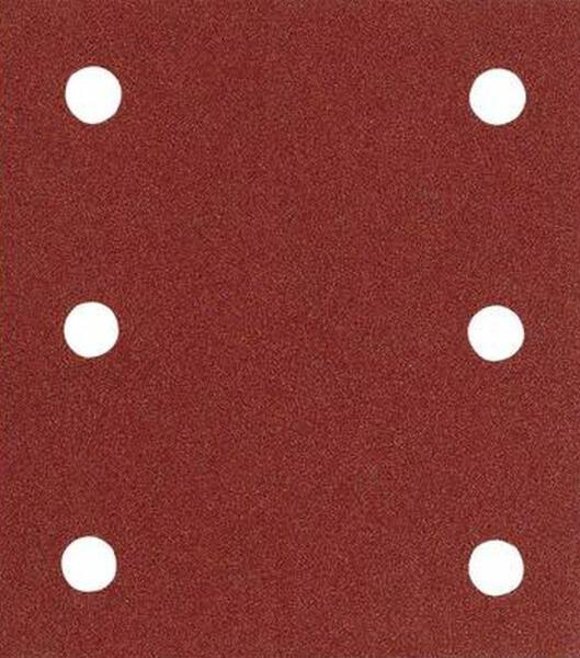 Alumínium-oxid csiszolópapír műgyantakötéssel, "E" papíron Ajánlott felhasználás: Fa, fém, falazat, rozsdamentes anyagok és műanyag csiszolására. BO4555 típusú géphez. Paraméterek: Anyag: Alumínium-oxid Kiszerelés: 10 db/csomag Méret: 114 x 102 mm Szemcseméret: K150 "E" hordozóanyag: 200 - 250 g/m2