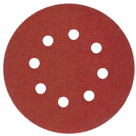 Tépőzáras csiszolópapír kör alapon, sarokcsiszolóhoz, fúrógéphez. A csiszoló komponens a dolgozó rétegben alumínium-oxid. A papír megfelelő méretű sarokcsiszolóval és fúrógéppel is használható, megfelelő tányér alkalmazásával. Fém, fa, műanyag és egyéb anyagok ...