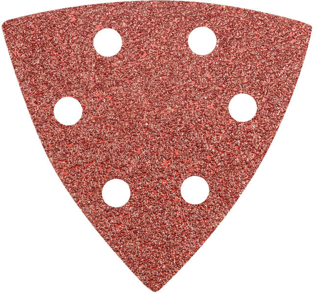 GRAPHITE delta csiszolólap, tépőzáras (cikkszám: 55H763), méret 93 x 93 mm, K40 szemcsefinomság fa, faalapú anyagok, fémek és műanyagok csiszolására szolgál. A tépőzáras rögzítés lehetővé teszi a kopott papír gyors cseréjét. A lyukak lehetővé teszik a por elszívó rendszerrel felszerelt szerszámok szinte pormentes működését. Mechanikus csiszoláshoz tervezett E-pap