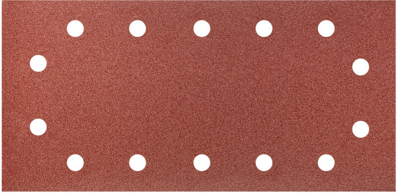 Csiszolópapír tépőzáras GRAPHITE (cikkszám: 55H724) mérete 115 x 230 mm finomsága 120, lyukakkal. Felhasználás: fa- és faszerű anyagok, fémek és műanyagok csiszolása. A papír készítéséhez E típusú papírbázist használtunk, ami gépi csiszolásra szolgál. Az alkalmazott félig nyílt szórásnál a felület 80-90%-t borítja csiszolószemcse (nemes elektrokorund), ami növ