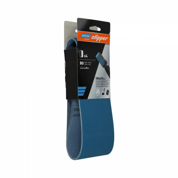 A Norton Clipper csiszolószalagok 13x454mm-től 100x610mm-ig kaphatók. A szalagok cirkónium-oxid szemcsékből készülnek, amely nagy teljesítményt biztosít olyan kemény alkalmazásoknál, ahol nehéz anyagok eltávolítására van szükség. A szíjak megfordíthatók, így mindkét irányban használhatók a gépen. A nagy teljesítményű csiszolóanyag gyors vágási műveletet és mag