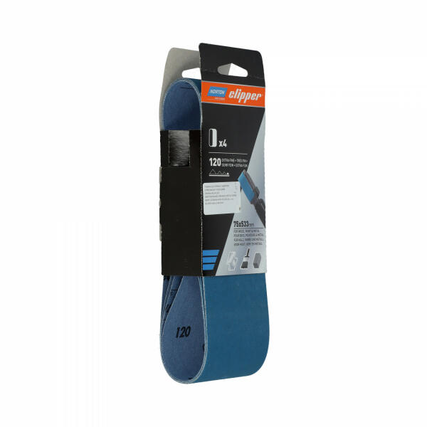 A Norton Clipper csiszolószalagok 13x454mm-től 100x610mm-ig kaphatók. A szalagok cirkónium-oxid szemcsékből készülnek, amely nagy teljesítményt biztosít olyan kemény alkalmazásoknál, ahol nehéz anyagok eltávolítására van szükség. A szíjak megfordíthatók, így mindkét irányban használhatók a gépen. A nagy teljesítményű csiszolóanyag gyors vágási műveletet és mag