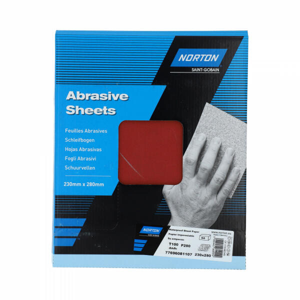 A Norton T100 Alumina vízálló lemezeket kifejezetten nedves és száraz megmunkálásra készítették. A T100 lemezek jól eltávolítják a fölösleges anyagot, kiváló minőségű kivitelben és kiváló simaságban részesülnek. A rugalmas latex háttér lehetővé teszi az egyenetlen és alakú felületekkel való munkát. Ez kiváló megoldás az autóipar és a famegmunkálás számá