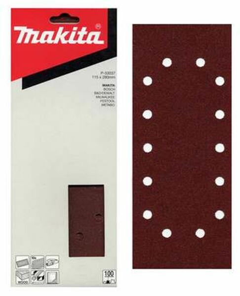 Makita perforált csiszolópapír - 93 x 230 mm - K150 - 50 db 50 darabos csiszolópapír csomag. Alkalmas fa, vas- és színesfémek és műanyagok csiszolására. Alumínium-oxid csiszolópapírból készült csomag, 8-szor perforált lapok. Szemcseméret: K150 Méret: 93 x 230 mm Csomag tartalma: 50 db Famegmunkáláshoz 40-80-as, durva csiszoláshoz (pl. régi festék vagy lakkréteg eltávol