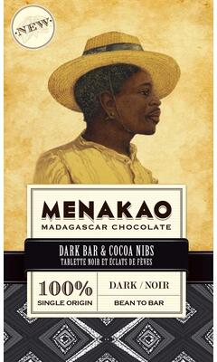 100%-os étcsokoládé, cukormentes. Sötét tábla erőteljes kakaójegyekkel, határozott, mély tónusú, kerek íz. A töret ropogóssága rusztikus és robusztus tapintást kölcsönöz, amely remekül keveredik a csokoládé vörös gyümölcsös jegyeivel. A MENAKAO egy Madagaszkáron született brand, amelyhez a Sambirano völgyben termő criollo kakaóbab variánst használják fel. A bea
