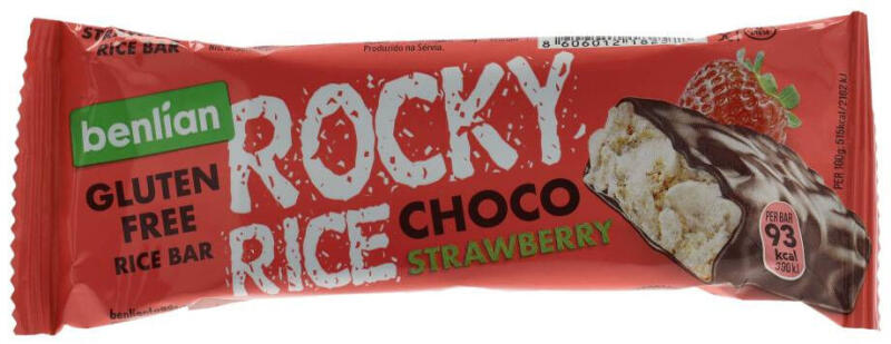 Eperízű, gluténmentes puffasztottrizs-szelet barna rizsből, étcsokoládéval bevonva. Rostforrás a szervezetnek.