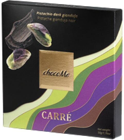 Pisztácia gianduja étcsokoládéval Szicília szigetéről származó pörkölt, 100%-os pisztáciamasszából és madagaszkári kakaóbabokból készült 64%-os étcsokoládé találkozása. Az 50 fokra felmelegített pisztácia pasztát és az étcsokoládé masszát alaposan összekeverjük, hogy tökéletes emulziót alkossanak. Ezt követően temperáljuk, és öntőformába töltjük: mega