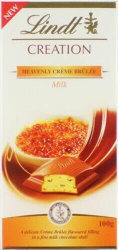 Lindt Creation tejcsokoládé karamellizált cukordarabokkal és krémmel töltve. Összetevők: c ukor, kakaóvaj, teljes tejpor , vajzsír , kakaómassza, laktóz , karamellizált cukor (cukor, kakaóvaj) (4%), sovány tejpor , ostya ( búza- és rizsliszt, cukor, sűrítőanyag (nátrium-bikarbonát) (1%)), emulgeálószer: szójalecitin , árpamaláta kivonat , aromák. A termék elvétve mog