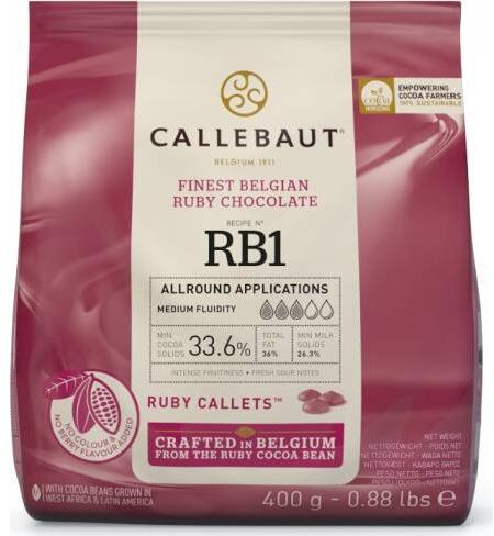 Igazán finom csokoládét keresel a csokis finomságokhoz?A Calleba ut Ruby csokoládéban nem fogsz csalódni!Különleges színét és gyümölcsös ízét a ruby kakaóbab adja, ami egy tejcsokoládé fajta. A finom Belga csokoládénak senki nem tud ellenállni. Használhatod sütikhez, desszertekhez, forró csokihoz, bonbonok készítéséhez is.
