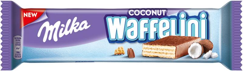 Milka waffelini kókusz ízben 31g Hivatalos magyarországi forgalmazótól. Összetevők: Cukor, Búzaliszt, Pálmaolaj, Kakaóvaj, Maltodextrin, Sovány tejpor, Búzakeményítő, Kakaómassza, Tejsavópor, Tejzsír, Kókuszreszelék (0,8%), Burgonyakeményítő, Emulgeálószerek (szójalecitinek, E476), Repceolaj, Étkezési só, Aromák, Térfogatnövelő szerek (E500, E503) Tápértékre von