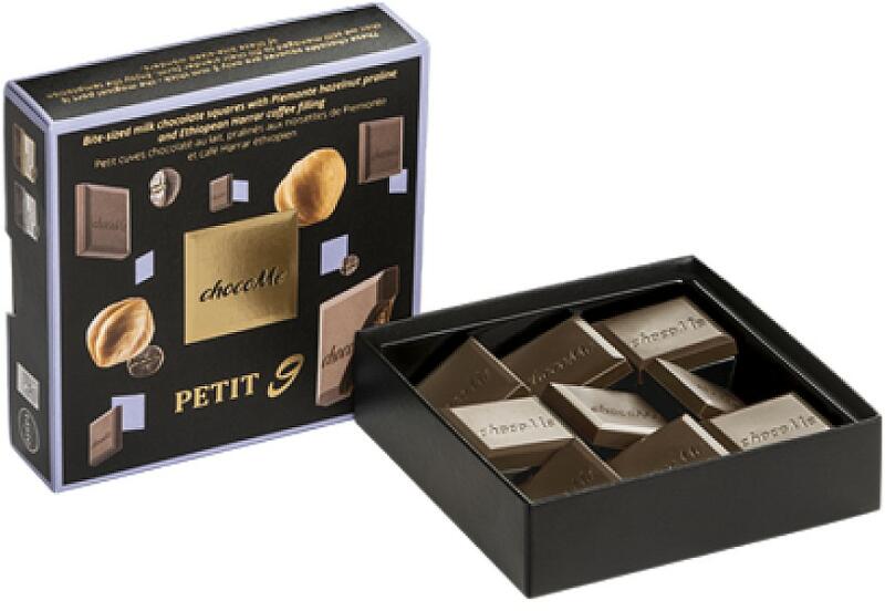 Falatnyi tejcsokoládé lapocskák Piemonte-i mogyoró praliné és Etióp Harrar kávé töltelékkel Az eredetvédett Piemonte-i mogyorószemekből készített mogyorópaszta tisztább mogyoró ízzel nem is rendelkezhetne. A töltelékbe tökéletesen pörkölt Etióp Harrar típusú, apróra őrölt kávét kevertünk, melynek tökéletes védelmet ad a tejcsokoládé korpusz.