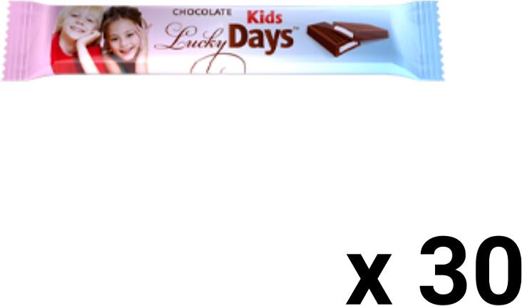 Lucky kids days csokoládé 30x12,5g Hivatalos magyarországi forgalmazótól. Leírás: Millennium Lucky Days - csokoládé finom tejjel töltelékkel. Remek ok egy kávészünetre. Összetevők: tejcsokoládé (cukor, kakaóvaj, teljes tejpor, kakaómassza, tejsavópor, emulgeálószer (szójalecitin), konyhasó, vanillin aroma). Töltelék (40%): cukor, növényi zsír (pálmaolaj, pálmamag o