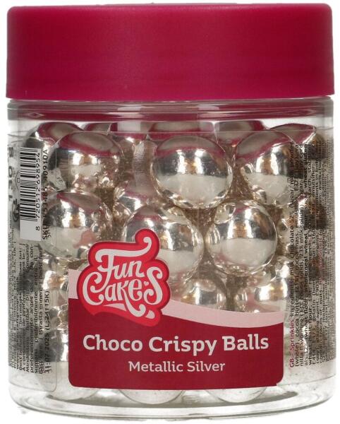 Csokoládé golyók Crispy Balls - Metál ezüst 130 g Csokoládé golyókkal díszíthet cupcakes-et, tortákat, süteményeket és egyéb desszerteket. A kész csokoládé golyók sütemények és piték ízletes dekorációi. Színezheti őket ehető spray vagy porfestékekkel , hogy érdekes és eredeti végeredményt érjen el. A termék nem tartalmaz glutént. Befejező eljárásHa a golyók