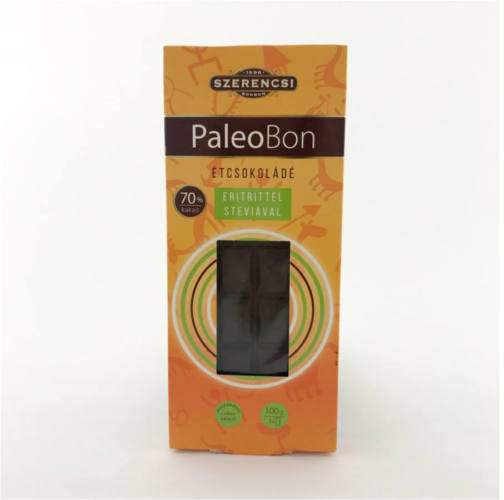 Paleobon étcsokoládé édesítőszerekkel. Kakaó szárazanyag legalább 70%. Túlzott fogyasztása hashajtó hatású lehet!100 g-os eritrites étcsokoládé; Paleobonbon termék az egészséges élelmiszerek kedvelőinek.