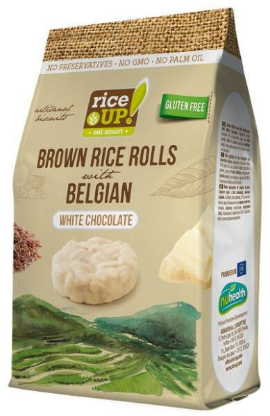 Rizs snack szeletek, fehércsokival bevonva Összetevők: fehércsokoládé (55%), [kakaóvaj, cukor, sovány tejpor, tejzsír, laktóz, emulgeálószer: szójalecitin], teljes kiőrlésű barna rizs (45%). Kiszerelés: 50 g
