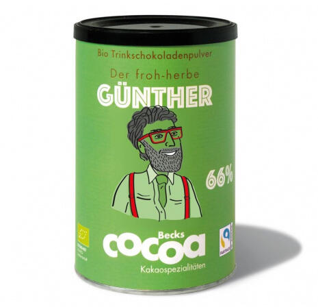 GÜNTHER - A HIPSZTER KAKAÓ Günther fantázianevű kakaónk mindazoknak az egészségtudatos, de finomságokat szerető népeknek szól, akik nem elégszenek meg csak egy csészével. A csökkentett cukor, és 66%-os kakaótartalom csábító kombináció. Egy dobozból 20 csésze készíthető, nemcsak melegen, hidegen is ajánljuk! Így készítse el kakaóját: Melegítsen, vagy még jobb ha
