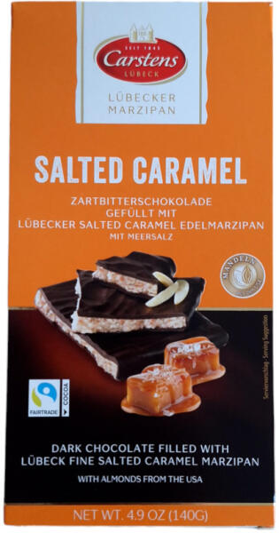 A Carstens Lübecker sóskaramellás marcipános étcsokoládé egy exkluzív ínyencség, amely a legfinomabb összetevők találkozásával készült. Az USA-ból származó, kiváló minőségű mandulából készült marcipán találkozik a selymes, enyhén sós karamellel és a gazdag Fair Trade étcsokoládéval, hogy egy igazán különleges, intenzív ízvilágot nyújtson. Ideális válas