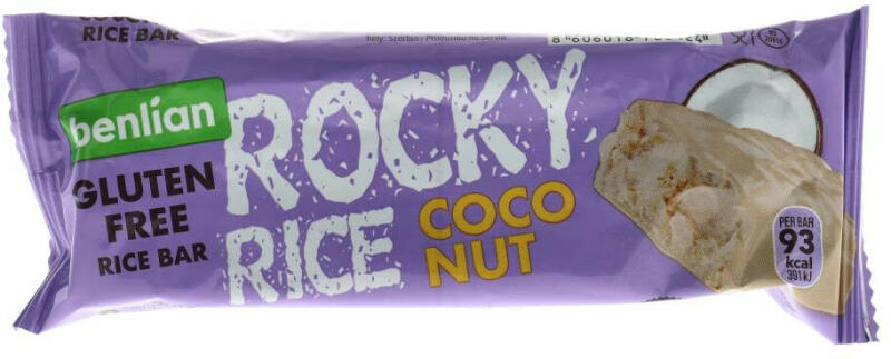 Kókusz ízesítésű, gluténmentes puffasztottrizs-szelet barna rizsből, fehér tejbevonóval bevonva. Rostforrás a szervezetnek.