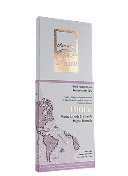 Étcsokoládé Choroni-ból származó kakaóbabból A venezuelai Choroniban található La Sabaneta farmról származó kakaóbab jellegzetes és kifinomult ízprofiljáról ismert, amely tükrözi a régió terroir és hagyományos termesztési módszereit. A tipikus ízjegyek a következők꞉ citrusfélék erős savassággal (leginkább a pink grapefruit), erős passion fruit‑ra emlékeztet