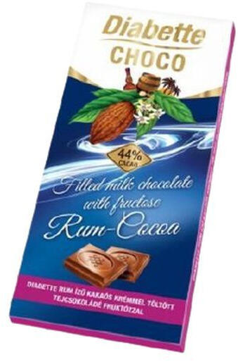 Diabette choco rum ízű kakaós krémmel töltött tejcsokoládé fruktózzal 80 g80 g-os töltött tejcsokoládé; Diabette termék az egészséges élelmiszerek kedvelőinek.