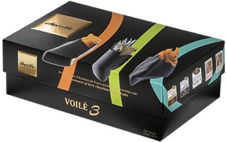 Étcsokoládéba mártott gyümölcs válogatás (3x50g) A Voilé mártott gyümölcsei egy exkluzív válogatásban – ezt kínálja a Voilé 3. A nemzetközi szakmai zsűri által legmagasabbra értékelt, többszörösen díjhalmozó Voilé ízekből készült összeállítást három különböző karakterű és ízvilágú mártott gyümölcs különlegességből állítottuk össze. Étcsok