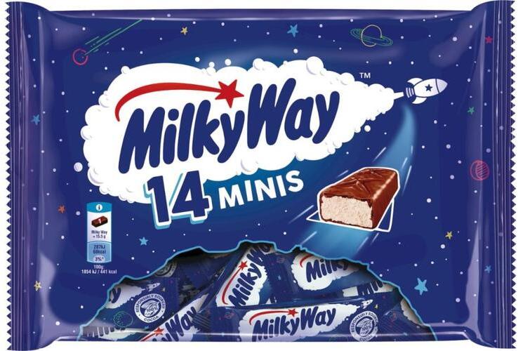 Milky Way Minis Tejcsokoládé Szeletek 227g Ez a Milky Way Minis csomag 14 db népszerű klasszikus mini csokoládé szeleteket tartalmaz – egy enyhén felvert cukorkrémmel töltött csokoládét, amely tökéletes a családdal és a barátokkal való megosztáshoz. Élvezze a snack méretű szeleteket egy csésze kávé mellett, vagy édes finomságként ebéd után.
