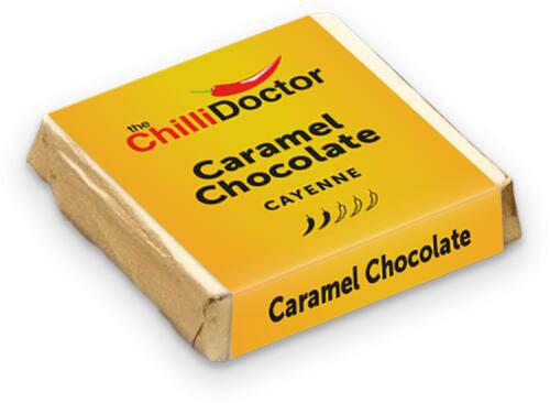 A karamellás csokoládé és a Cayenne paprika tökéletes egyensúlyt alkot az édesség és a csípősség között. Az édes karamellás alap tökéletesen illeszkedik a Cayenne paprika intenzív csípősségéhez. Édes és csípős – a Cayenne paprika megfelelő mennyiségű csípősséget ad a csokoládénak Egyedi karamellás íz – a karamellás alap a desszertkedvelők számára ideá