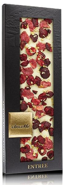 Táblás csokoládé chocoMe fehércsokoládé Liofilizált meggy darabkák Rózsaszirom - kandírozott Valódi 23 karátos arany