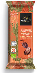 Ugandai ültetvényszelektált kakaóbabból és mogyorókrémből készült csokoládés gianduja, 10% kakaóbab törettel. A pörkölt, ropogós kakaóbab keserű és enyhén savas jegyeivel kiemeli a gianduja lágyságát és édes ízét, a párosítás egyedülálló ízélményt nyújt! BIO minősítésű, gluténmentes, vegán. összetevők: Kakaómassza ugandai kakaóbabból 33%, nádcukor