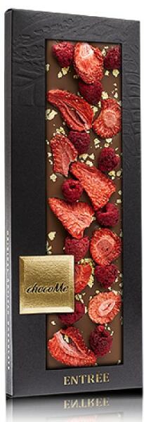 Táblás csokoládé chocoMe 43% tejcsokoládé Liofilizált eper szeletek Liofilizált málna szemek Valódi 23 karátos arany