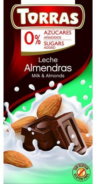 Torras gluténmentes Mandulás tejcsokoládé hozzáadott cukor nélkül 75g.
